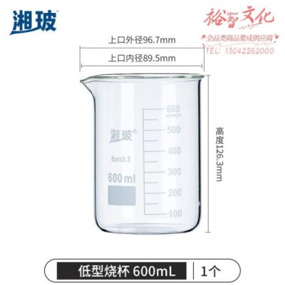 比克曼生物(BKMAM)湘玻 玻璃烧杯低型带刻度透明量杯加厚高硼硅耐高温实验器材 【600mL】1个 (SKU:yzwhyp921251