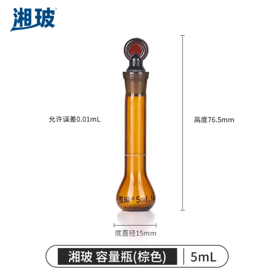 比克曼生物 湘玻 容量瓶玻璃加厚定量瓶定容瓶A级可过检透明棕色磨口具塞耐高温实验室 【棕色】5mL 1个 (SKU:yzwhyp921252