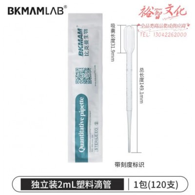 比克曼生物 滴管一次性塑料带刻度巴氏吸管微量无菌独立装移液分装实验室 【2mL】独立装120袋 1包 (SKU:yzwhyp921266
