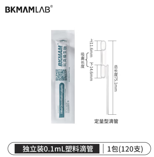 首页 > 仪器仪表 > 生物、医学样品制备设备 > 比克曼生物 滴管一次性塑料带刻度巴氏吸管微量无菌独立装移液分装实验室 【100μL双囊】独立装120袋 1包 (SKU:yzwhyp921269