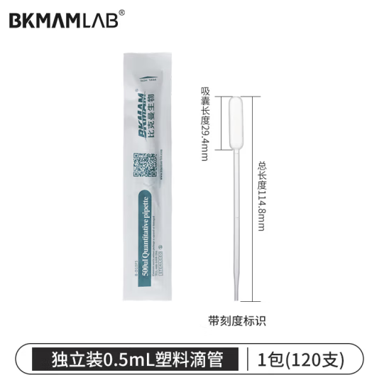首页 > 仪器仪表 > 生物、医学样品制备设备 > 比克曼生物 滴管一次性塑料带刻度巴氏吸管微量无菌独立装移液分装实验室 【0.5mL/500μL】独立装120袋 1包 (SKU:yzwhyp921271