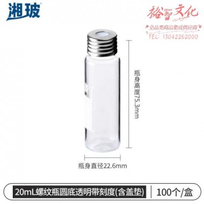 比克曼生物 湘玻 玻璃进样瓶顶空瓶液相气相色谱样品瓶带刻度取样瓶含内垫 【20mL】螺纹瓶圆底透明 100个 (SKU:yzwhyp921275