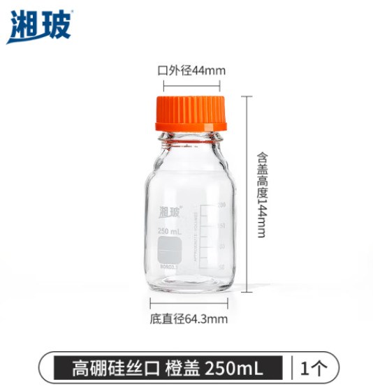 首页 > 仪器仪表 > 生物、医学样品制备设备 > 比克曼生物 湘玻 试剂瓶玻璃蓝盖橙盖透明棕色螺口广口密封瓶带刻度样品瓶采样瓶实验室【橙盖高硼硅】透明250mL 1个 (SKU:yzwhyp921386