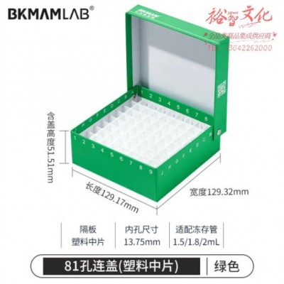 比克曼生物 纸质冻存管盒冷冻管盒样本冻存盒低温储存盒防水纸质试管盒【绿色】81孔连盖(塑料中片) (SKU:yzwhyp921395