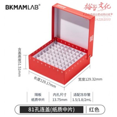 比克曼生物 纸质冻存管盒冷冻管盒样本冻存盒低温储存盒防水纸质试管盒【红色】81孔连盖(纸质中片) (SKU:yzwhyp921396