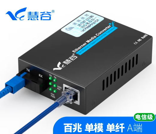 慧谷 光纤收发器 光电转换器 网络光端机 电信级 百兆一光一电单模单纤A端 SC接口 1台 (SKU:yzwhyp921458