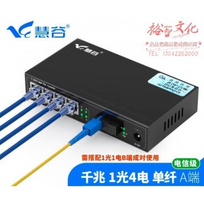 慧谷 光纤收发器 光电转换器 网络光端机 电信级 千兆一光四电单模单纤A端 SC接口 1台 (SKU:yzwhyp921467
