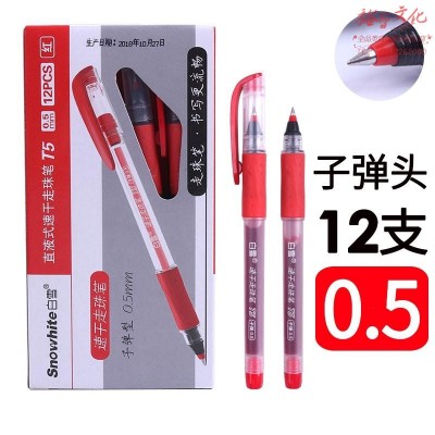 白雪 T5速干中性笔 红笔子弹型水笔红色0.5mm12支/盒 (SKU:yzwhyp921507