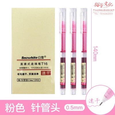 白雪(snowhite)T16直液笔彩色速干中性笔针管型签字笔ins无印简约风小清新标记绘画笔粉色0.5mm12支/盒 (SKU:yzwhyp921509