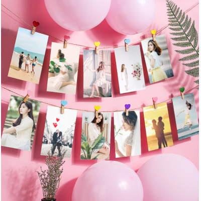 MOREQUICK 6472卡通相片木质夹 带麻绳 10个每包 挂照片的绳子和夹子彩色爱心婚礼小木夹子卡片夹子相片便签夹照片相册墙装饰