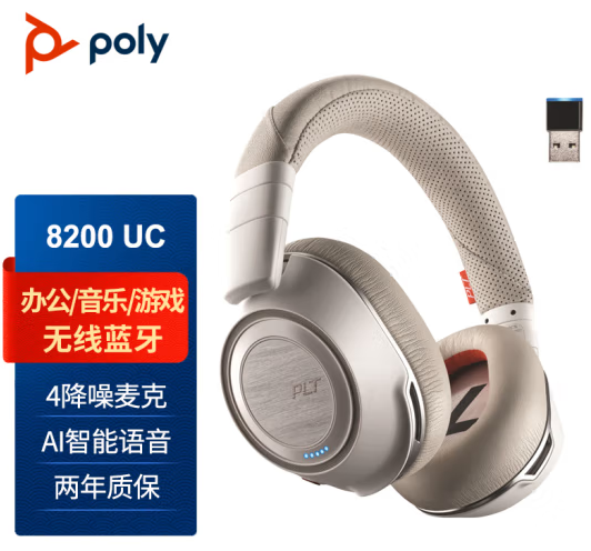 博诣 POLY B8200UC 蓝牙无线耳机耳麦 ANC主动降噪耳机 会议耳机 音频视频会议终端 (SKU:yzwhyp921645