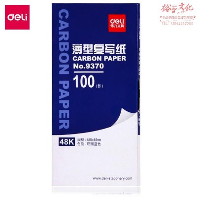 得力 48K经济耐用薄型复写纸(18.5*8.5cm) 100张/盒 蓝9370(SKU:yzwhyp921707
