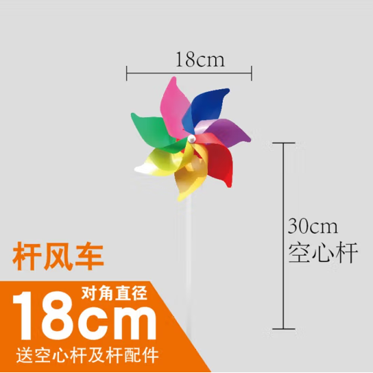 米魁 户外旋转装饰风车小礼品插地手拿儿童玩具手工风车国庆中秋装饰风车 七彩18cm杆10个 (SKU:yzwhyp921722