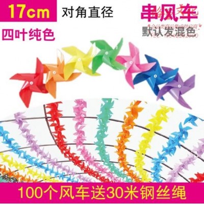 米魁 风车装饰户外旋转幼儿园小风车景区悬挂塑料风车串玩具风车 四纯17cm/100个 30米钢绳(七种颜色混发) (SKU:yzwhyp921726
