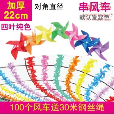 米魁 风车装饰户外旋转幼儿园小风车景区悬挂塑料风车串玩具风车 加厚四纯22cm/100个 30米钢绳(七种颜色混发) (SKU:yzwhyp921729