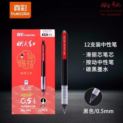 真彩 0.5碳黑状元红滑丽芯签字笔子弹头按动中性笔 12支/盒 V3577(SKU:yzwhyp921806