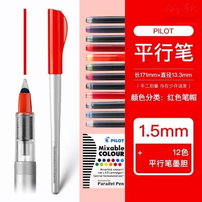 百乐 FP3-SS平行笔 美术美工钢笔 鸭嘴笔 艺术字体英文书法钢笔 【红色1.5mm 12支彩色墨胆】(SKU:yzwhyp921817