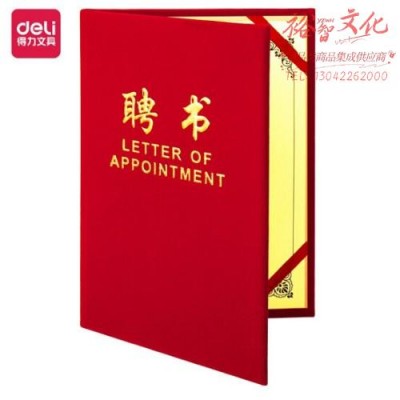 得力(deli)8K荣光系列绒布浮雕工艺聘书 红色7598(SKU:yzwhyp922099