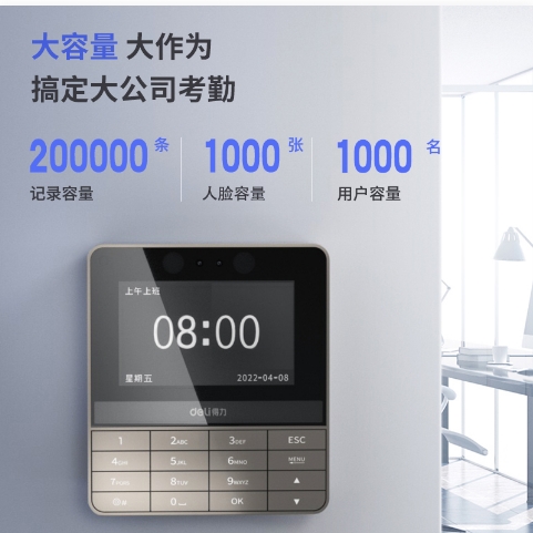 得力(deli)人脸识别考勤机 无接触打卡机签到机 可见光动态识别 防照片视频打卡 一键导出报表13865 (SKU:yzwhyp922199