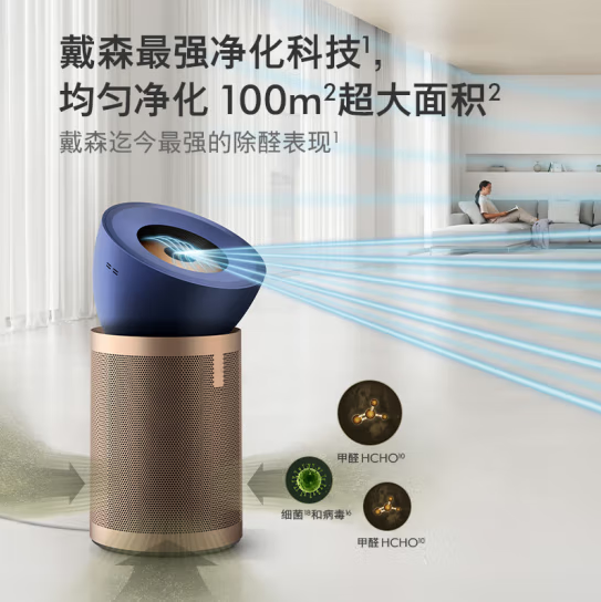 戴森(DYSON)BP04空气净化器 大面积净化分解甲醛 输出洁净凉风 五重传感器监测系统 10米气流喷射 【蓝金色】(SKU:yzwhyp922270