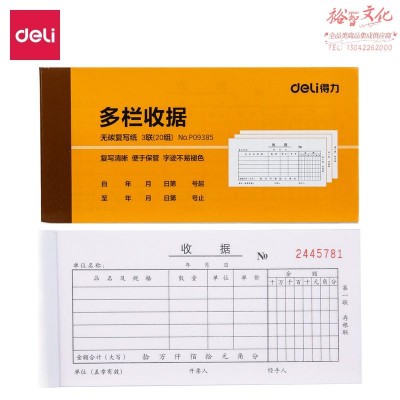 得力(deli)10本三联多栏收据无碳复写 财务手写单175*87mm 财务用品 9385(SKU:yzwhyp922295