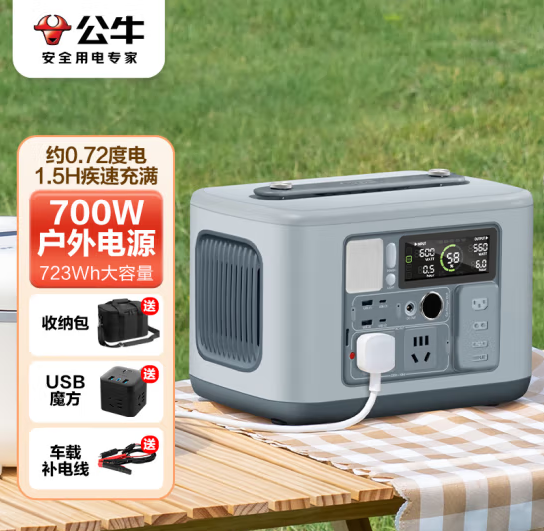 公牛快充移动户外电源220V 700W大容量大功率约0.7度电 笔记本充电宝自驾露营摆摊应急电源停电备用 晴空蓝 (SKU:yzwhyp922474