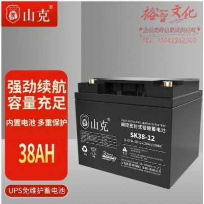 山克蓄电池12V38AH UPS电池太阳能蓄电池12VUPS不间断电源电池 SK38-12 (SKU:yzwhyp922507