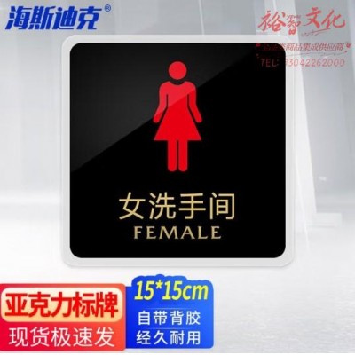海斯迪克 亚克力标识牌(女洗手间)15*15cm 标语牌背胶标识贴 gnjz-1361 (SKU:yzwhyp922770