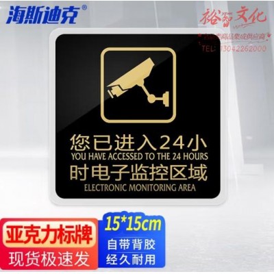 海斯迪克 亚克力标识牌(您已进入24小时电子监控区域)15*15cm 标语牌背胶标识贴 gnjz-1361 (SKU:yzwhyp922771