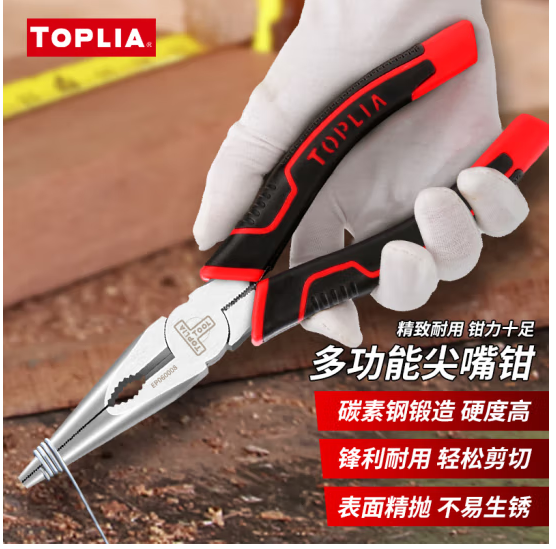 拓利亚(TOPLIA)多功能电工尖嘴钳8寸家用尖口钳尖头钳200mm EP060008(SKU:yzwhyp922807