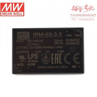 明纬(MEANWELL) IRM-03-3.3小型模块开关电源(3W左右)交流转直流插脚型 3.3V900mA输出 (SKU:yzwhyp923013