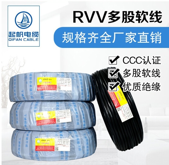 QIFAN/起帆 RVV-300/500V-5×4 护套黑色100m 国标铜芯设备电源线(SKU:yzwhyp923197