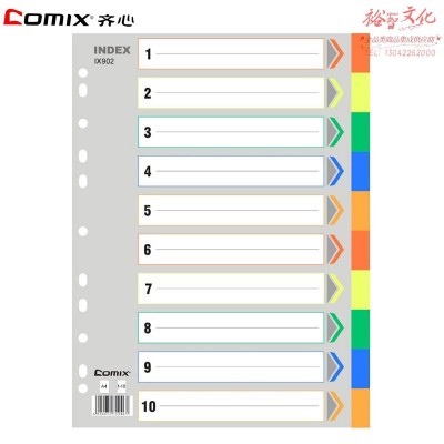 首页 > 纸及纸质品 > 纸及纸板(不包含复印纸) > 齐心(Comix) IX902 10色装A4十色分页索引纸11孔PP隔页标签 (SKU:yzwhyp923463