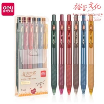 得力(deli) 复古6色签字笔按动笔 软胶护套水笔手账笔 0.5mm子弹头 12支 33728(SKU:yzwhyp923517