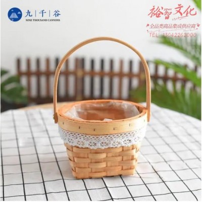 九千谷9050 花篮筐 手提花边花篮木片圆口花篮子竹编绿植仿真花卉插花收纳编织篮装饰摆件小巧便携花筐花器 (SKU:yzwhyp923551