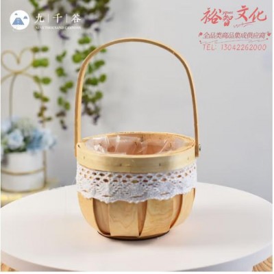 九千谷9047 花篮筐 南瓜篮 藤编编制手提花篮花盆插花绿植仿真花竹篮收纳篮编织花篮工艺品柳编竹编篮竹筐 (SKU:yzwhyp923552