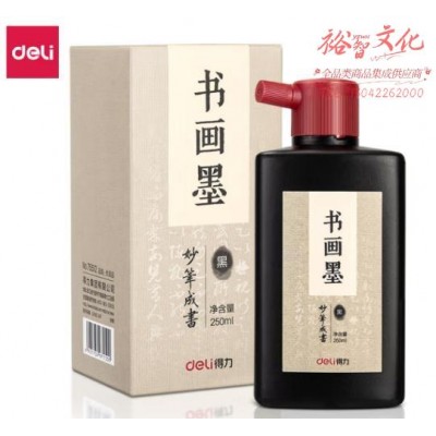 得力(deli)250ml高级书画墨汁 特制浓墨 文房四宝 学生成人毛笔砚台书法绘画国画创作 浓黑款父亲节礼物 75512 (SKU:yzwhyp923570