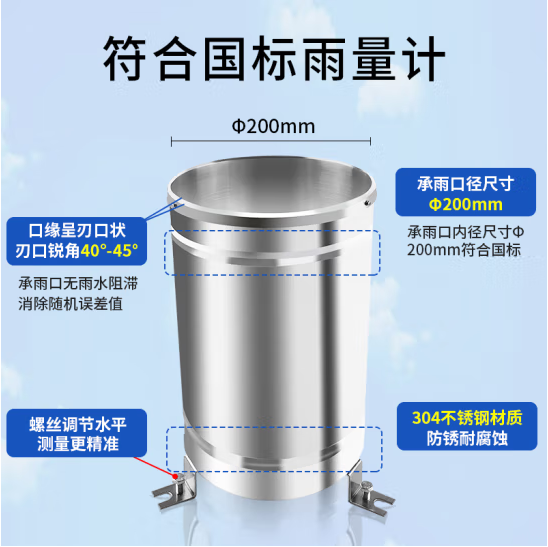 仪谷(YIGU)雨量监测站翻斗式雨量计雨量传感器不锈钢雨量桶传感器高精度 不锈钢材质 RS485输出 (SKU:yzwhyp923693