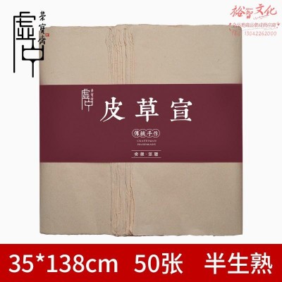 荣宝斋 宣纸 仿宋元明清古纸书画毛笔手工半生熟楮皮草毛边纸复古纸 50张皮草宣35*138cm(SKU:yzwhyp923749