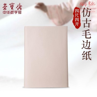荣宝斋 宣纸 仿古竹浆手工毛边纸加厚纸初学者学生毛笔字练习纸 仿古四尺四开半生熟100张(SKU:yzwhyp923750