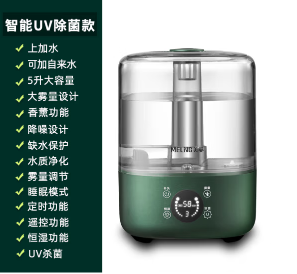 美菱(MeiLing)MH-T108 加湿器家用轻音卧室桌面空调孕妇婴儿空气除菌净化大喷雾容量 智能UV除菌款 (SKU:yzwhyp923786