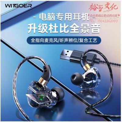 智国者EJ7 usb接口电脑耳机入耳式有线麦克风二合一带麦台式笔记本加长线k歌声卡直播语音电竞 (SKU:yzwhyp923855