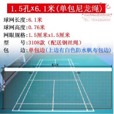 便携式羽毛球网标准网场地网室外内比赛羽球网拦网 1.5cm网孔送钢丝绳 手提包6.1米单包边 (SKU:yzwhyp923880