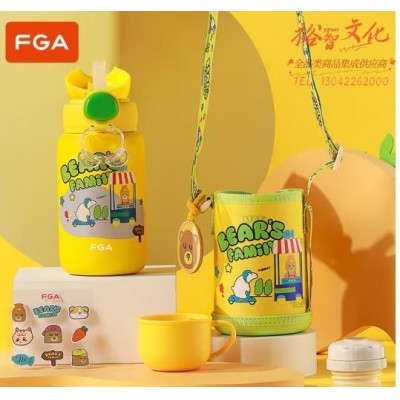 富光FGA 儿童保温杯 316不锈钢水杯婴儿喝水杯子宝宝吸管杯学饮杯防摔水杯大容量壶 黄色 550ML(SKU:yzwhyp923928