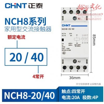 正泰NCH8-20/40-220/230V 家用小型单相交流接触器 导轨式四常开 20A(SKU:yzwhyp923961