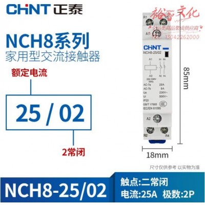 正泰NCH8-25/02-220/230V 家用小型单相交流接触器导轨式 二常闭25A(SKU:yzwhyp923962