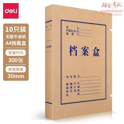 得力(deli)10只30mm230g无酸牛皮纸文件盒 中档加厚塑料财会档案盒 5610 (SKU:yzwhyp924108