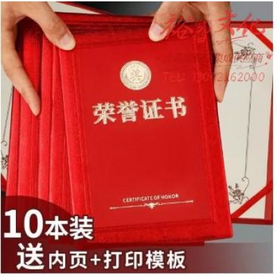 首页 > 办公用品 > 文具 > 国为(COUVEZI)【10本装】可定制荣誉证书外壳红色绒面颁奖奖状 光面8K 10本 (配15张内芯) (SKU:yzwhyp924131