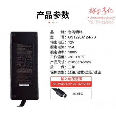 明纬(MEANWELL)开关电源12V 15A适配器企业级三插进线 GST220A12-R7B(不含输入线) (SKU:yzwhyp924337