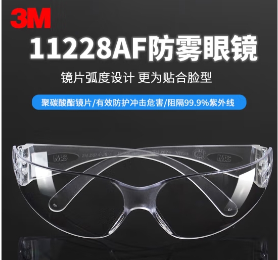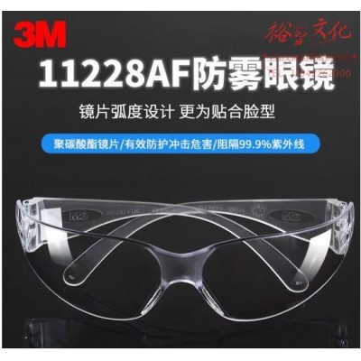 3M 11228AF护目镜 防雾涂层防冲击飞溅物防尘防风沙轻便经济型透明防护眼镜 (SKU:yzwhyp924610
